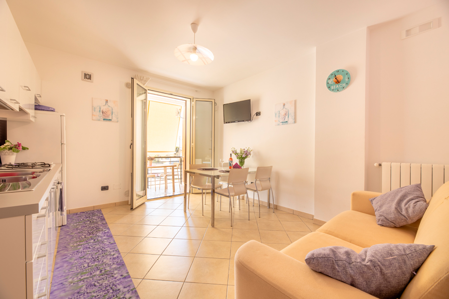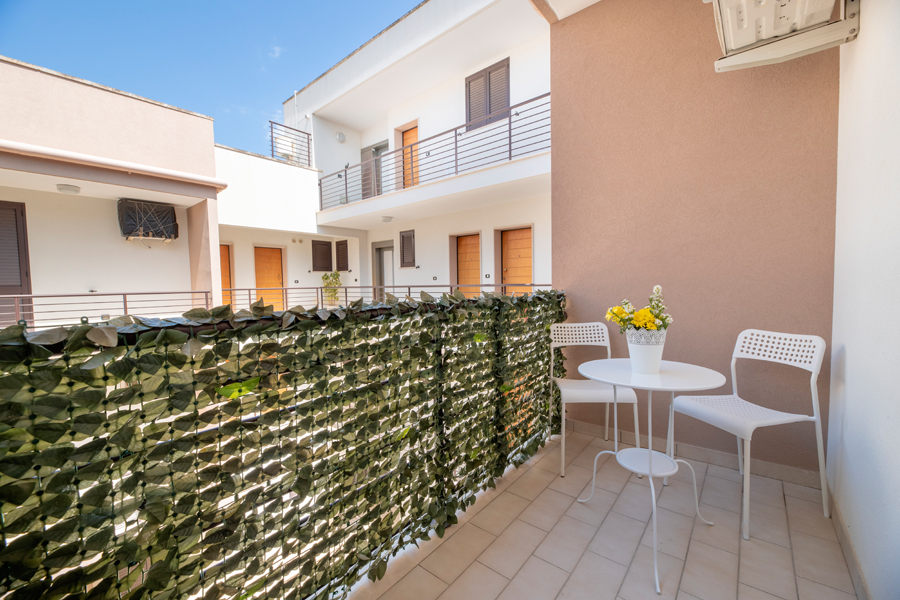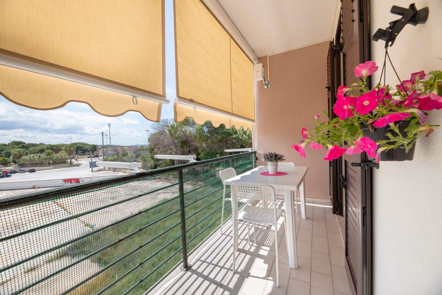Appartamento bilocale a 70 metri dalle spiagge bianche di sabbia. Situato al secondo piano di un residence appena realizzato. L'appartamento dispone di sala da pranzo provvista di angolo cottura e divano che può trasformarsi in un confortevole letto matrimoniale; camera da letto matrimoniale con possibilità di letto singolo aggiunto, bagno con box doccia. Veranda esterna attrezzata con tavolo e sedie.